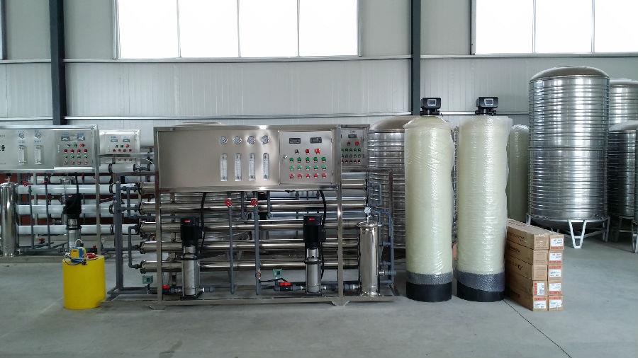 3、三级预处理系统:采用阳离子树脂软化水,主要是降低水的硬度,除去水分中钙镁离子(结垢的主要成分)能增加反渗透膜的使用年限。